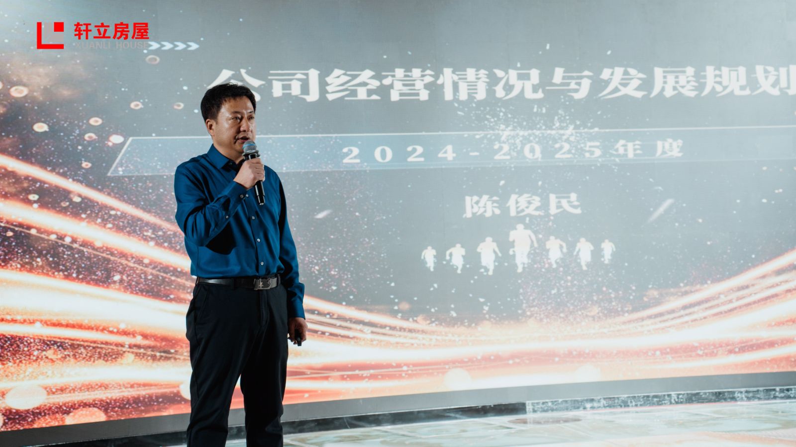 年會(huì)伊始,公司董事長陳俊民陳總發(fā)表了熱情洋溢的講話。他首先對(duì)2024年的工作進(jìn)行了全面回顧,肯定了全體員工在過去一年中的辛勤付出和取得的顯著成績。陳總表示,軒立房屋能夠穩(wěn)步前行,離不開每一位員工的努力和貢獻(xiàn)。隨后,他展望了2025年的發(fā)展前景,提出了新的目標(biāo)和愿景,激勵(lì)大家在新的一年里繼續(xù)攜手共進(jìn),共創(chuàng)輝煌。