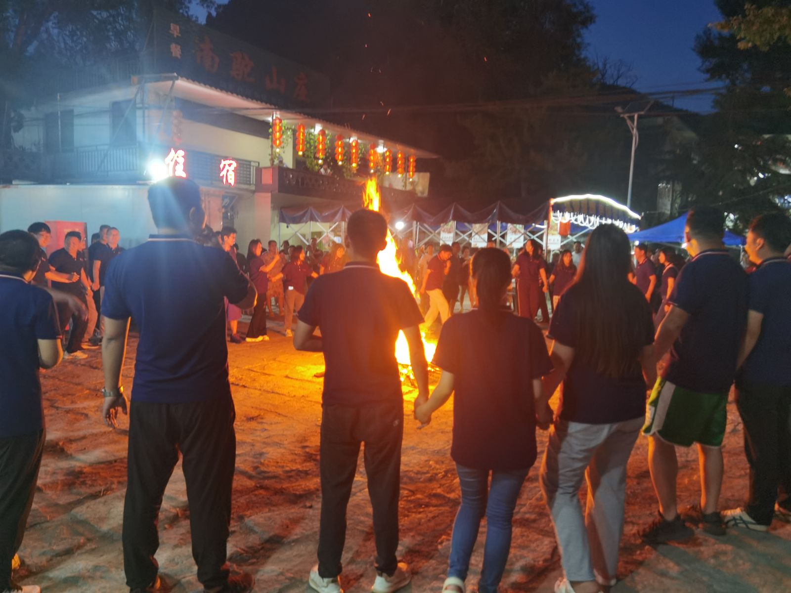 大家手拉著手,圍著篝火跳了起來?,F(xiàn)場氣氛推至高潮,歌聲笑聲回蕩在夜空里。